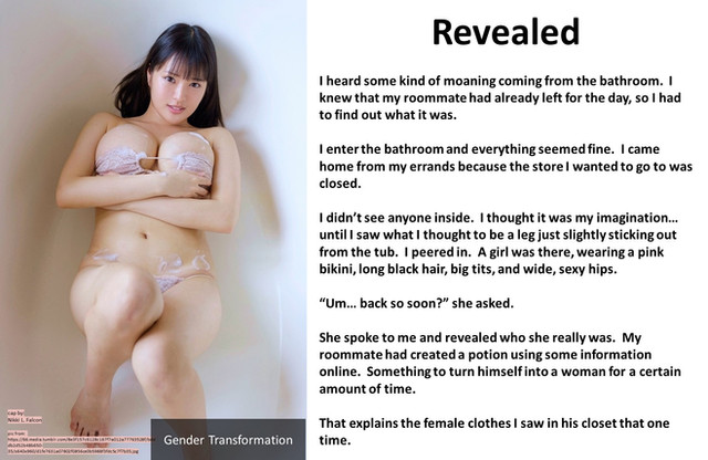 Mark was shocked, he stood touching his new breasts and his new cunt. It was unreal, it was all like some kind of dream. He shouted something and realized that he was now speaking Japanese. No one understood what happened and just thought it was some kind of joke from Sakura.