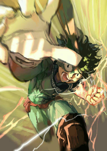 Ohhh god I love his hero costume to the m a x, it's got green, red, cool sneakers, THOSE ARM THINGS and also green. Had a blast with this and learned a lot from Horikoshi's art!Hope you like it <3