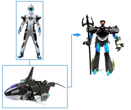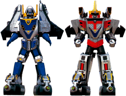 The Black Time Force Ranger and his Time Shadow Zord in both jet and Megazord modesRelated content
