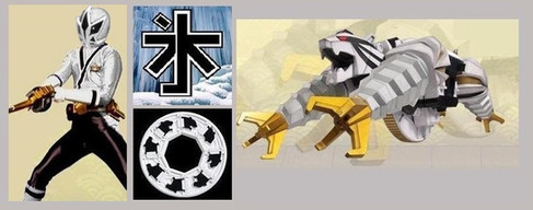 The Indigo Samurai Ranger with his Thunder Kanji and Rhino Folding Zord in Symbol, Battle, and Rhino ModesRelated content