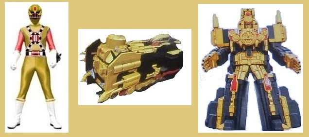 Time Force Gold Ranger with his Gold Chrono Morpher, AuraSaber, and TransWarp MegazordRelated content