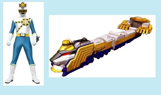 White RPM Ranger with his Engine Cell, Wing Wrench Saber, Osprey Speeder Zord and its Megazord Formation.Related content