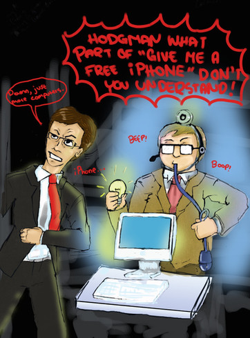 I was so bored today that I really didn't feel like doing any "work" work, so I spent the evening colouring this picture. It's was the first Mac/PC picture I drew and I still have a bunch just sitting in a box waiting to be coloured and what what not, so I'm trying to get on that. (I wish it was still summer)So, essentially this is Mac wishing PC a good day at work. Though it could just as easily be for a hundred other reasons too.