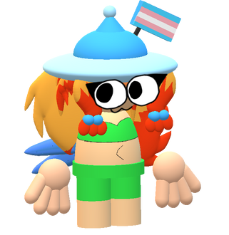 He appears to be a poorly made bambi (mostly expunged) drawing being all red and stuff