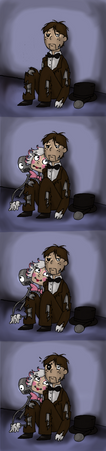 Honestly this is so brilliantly done, the shading really captures the emotion and feeling of being ignored and unwanted. The dull tones match not only the game but the overall feel of this AU so beautifully. JOE's expression and pose is absolutely heartbreaking too, shows he means no harm and the only similarity to Joey he has is his looks. Unfortunately, that appears to be enough of a reason for his creator to push him away. Someone save this child. Amazing work as always!