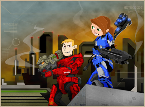 Well, what started out as a simple line and color test...turned into this...I don't even know how...SPARTAN IIs, Fred-104 and Linda-058, from Halo...drawn in the style of the new 'G.I. Joe: Renegades' TV show. I liked the designs I came up with for them, so I wanted to try them in color. I also wanted try an alternate (i.e. easier) outfit.