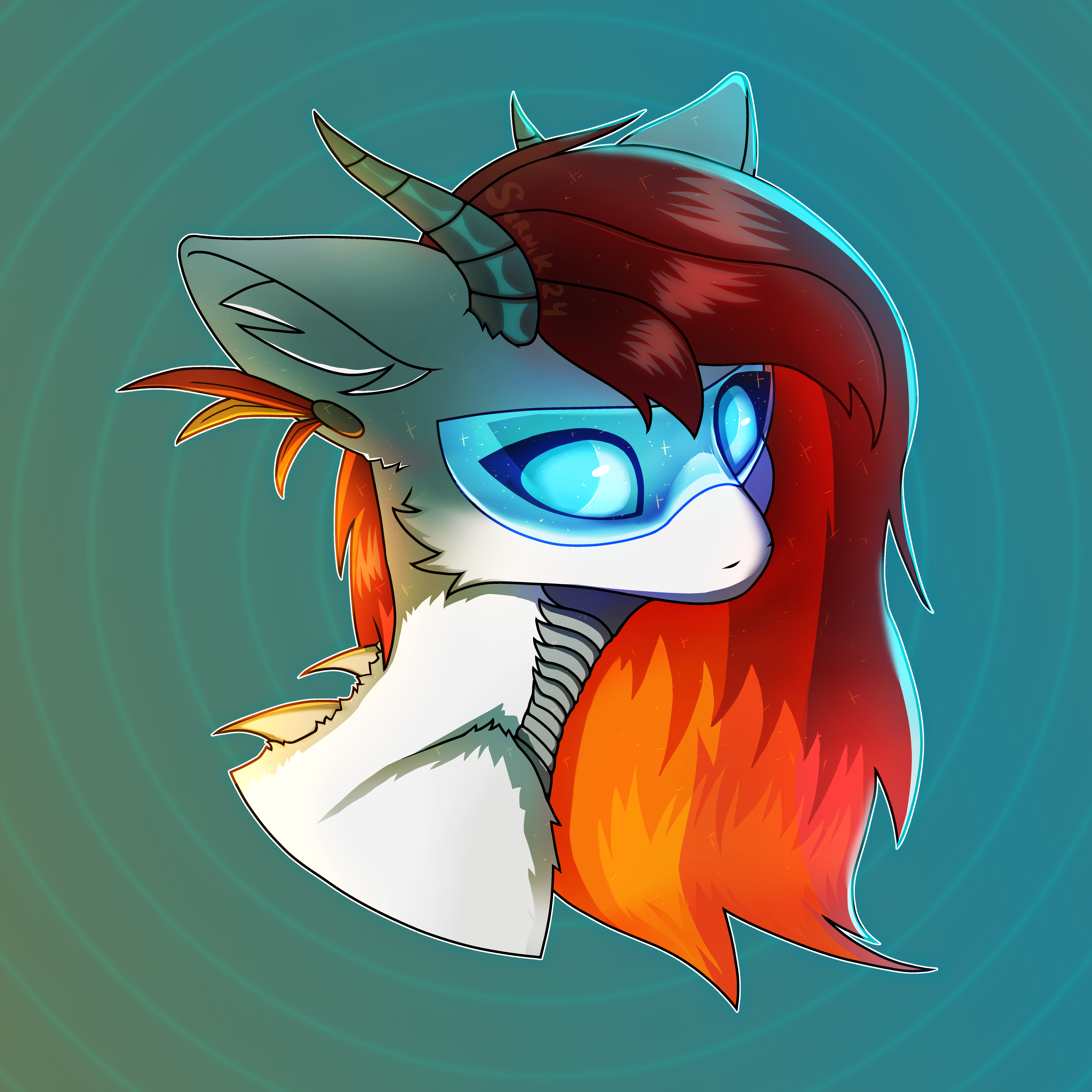 And shortly after I completed it, I wanted to do another one because it had been so much fun. And the two ponies who sprung to mind as good candidates were Spitfire and Octavia. Spitfire was the one that really stuck with me. And I always imagined it like this: she'd be facing the camera head-on, but looking slightly up and to the right; she'd also have cybernetic implants in the same vein as Vinyl, and she'd have this cocky grin (because that's just so her, you know?)