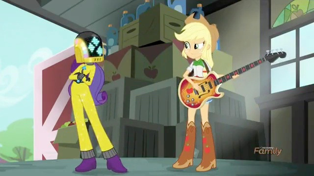 Daft Punk maybe my all time favorite band. I love this scene where Rarity is in a Daft Punk Costume!MLP Rainbow Rocks is owned by Hasbro.