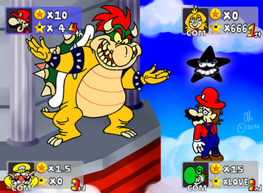 Act 3: His helicopter thing is all pissed off so he pounds it onto the ground sending a shock wave which you can dodge by jumping over it using the action command. Then you do the whole toy koopa process again and beat him.