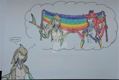 Now that Vah Medoh is calm, Alcedo, at the age of 19, can finally fly again freely. During his childhood he learned himself to catch fish easily and effectively. He asked the elder to travel around Hyrule. Since Alcedo is an adult now, he was allowed to travel. As a happy Rito he was he immediatly goes his way. His obsession with fishing kicks in every time he finds a pool of water, either big or small. He loves fishing and always tries to get more experience. Even that he travels long distances he always find time to bring back fish each day and make the others happy with loads of food. He is respected by his elder and other Rito. His big brother on the other hand doesn't as much. Teba likes the fish he brings, but would still prefer Alcedo to become an archer.
