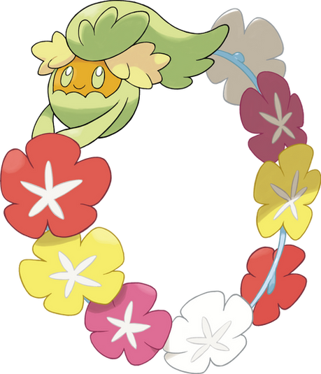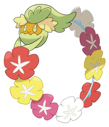DESCRIPTION: Springlace the Flower Necklace pokemon found in West Maohi. Light as the breeze, these little pokemon can be seen floating with the air currents on sunny days. They appreciate the blossoming of the flowers and are seen tending the garden, when they inhabit cities. They have a high healing power, so they are seen assisting Joy nurses in Maohi at Pokemon Centers. Your flowers can not be removed because they are part of your body, however when they want to heal or congratulate people and pokemon, they can create necklaces with their floral powers. They are sensitive and fearful of conflict, avoiding whenever possible to enter battles.