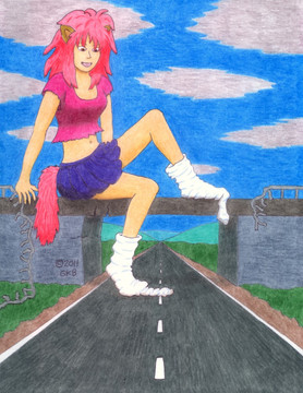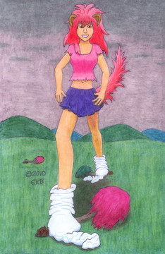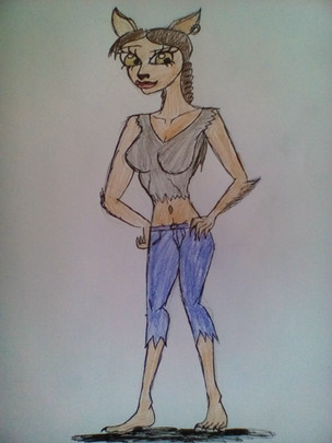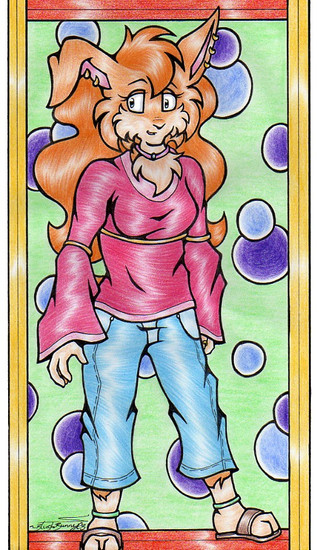 Her name is Muriska. She's 25 years old, about 5 feet tall, and a second cousin to Mango. She likes prog-rock and folk music from the late 60's and early 70s. She's quite musical and plays flute, oboe, and guitar.This looks like a simple pose but I drew and reworked the sketch with no reference unlike most of my drawings.