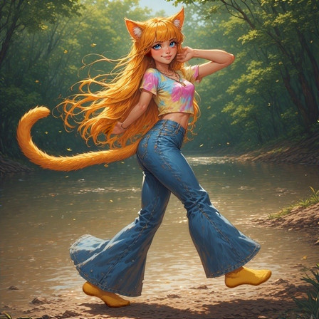 #bellbottoms #catgirl #groovy #hippy #striped #stripeysocks #furrytail #hippiegirl #longhair #stripes #sockedfeet