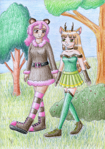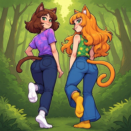 I couldn't think of a title and then the Blackbyrds song came to mind. Fleena and Mango were walking along and wondering if someone was following them. As usual they aren't wearing any shoes because they love the way grass feels through stocking feet.Related content