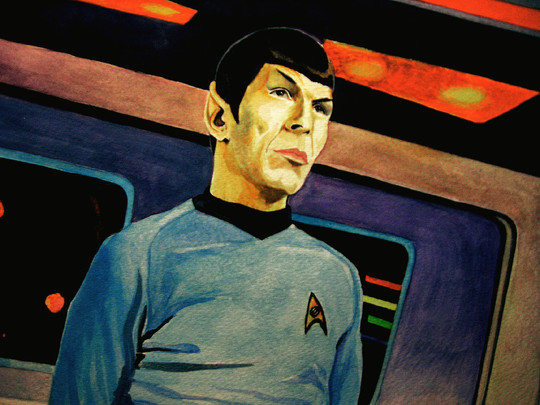 Ink illustration of Leonard Nimoy from "Star Trek".Related content