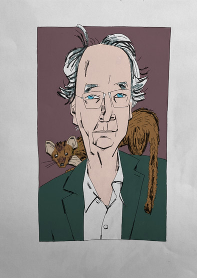 Author of 'The Hitchhiker's Guide to the Galaxy' and the 'Dirk Gently Holistic Detective Agency' novels, and scriptwriter for 'Doctor Who'.Pen and ink portrait coloured on Clip Studio.