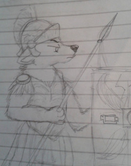 #warrior #ancient #sword #anthro #army #conscription #fantasy #furry #greaves #imperial #levy #lupine #shield #sketch #spear #tunic #wolf #hunterbeinghunted #ledoniaempire #linencuirass