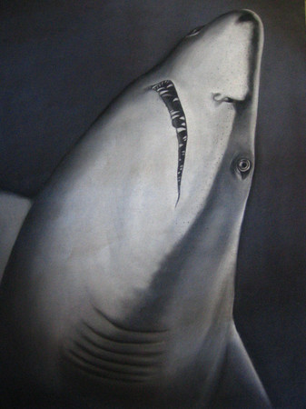 this is the front portion of a shark...I was taking a pottery class and was required to create a hand-built vessel, so I used the assignment as an excuse to sneak a sharky sculpture into my work for that semester.low fire