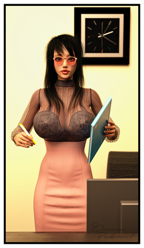 Your characters are adorable. I love the title matched with that dress... oh my god... her co-workers... so oddly sexy.