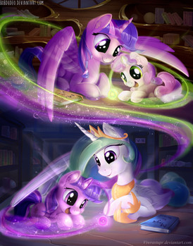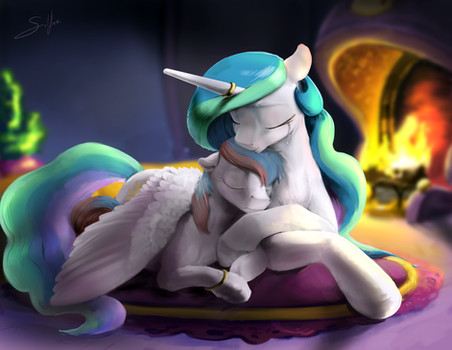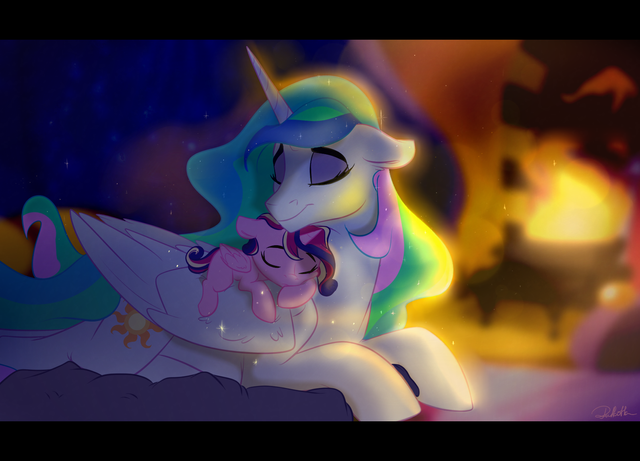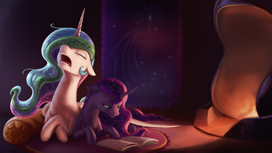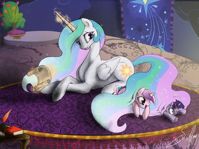Celestia: You should be in bed right now. Mother won't be too happy if she learns that you are still awake.