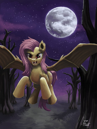 Had to join this with my own Flutterbat drawing. Also wanted to draw something from a scene that didnt get as much attention as I thought. That first change she goes through. That's also why only the eyes and the fangs are present, I left out the bat wings and different ears to make it seem more like shes in mid transformation.