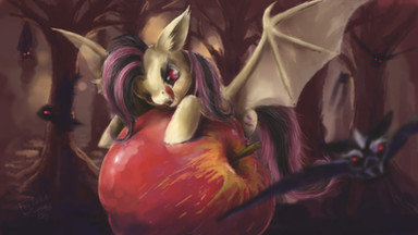 This apple will be gone in a few second. There is no way that Flutterbat can resist to that big, juicy apple.