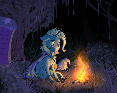 #campfire #light #mlp #night #sad #stars #trixie #fire #mylittlepony #trixielulamoon