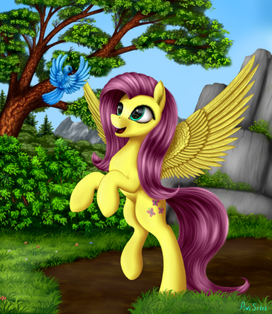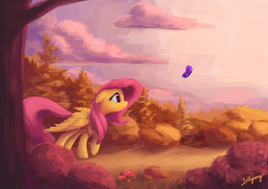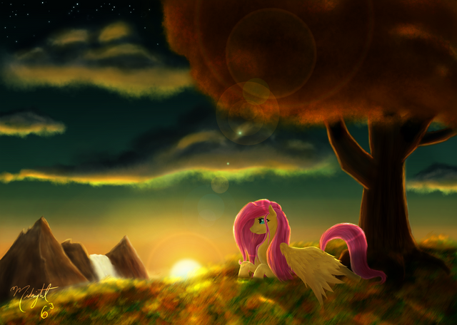 You just made my summer! I will use this as my background for the rest of the summer, because I LOVE both hiking and ponies. I've been looking for the perfect pony hiking/mountains artwork for years, but never found one quite like I hoped for... until now. And it also has Fluttershy, my favorite pony! It even has the right sunset/sunrise lighting, the "magic hours" of photography. Four criteria met in one painting! Thank you so much!