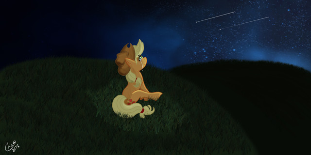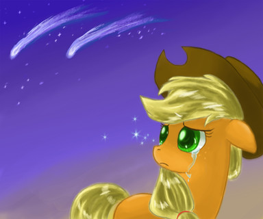 This is fantastic! Great emotion on Applejack's face, and that background is just gorgeous. Well done!