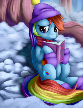 I love this work, it's so adorable. The background faded by the blowing snow is a very nice effect. I don't think Pinkie's tail is quite so....poofy though >_>