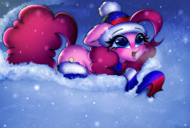 I like how you used the bluish light on both the snow and Pinkie. Lovely pic!