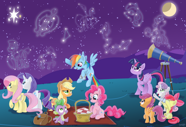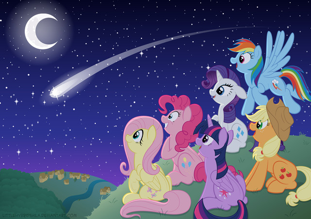 It looks beautiful. Nice work. The picture does remind a lot like (or inspired by) Owl's Well that ends well episode at the meteor shower scene minus the CMCs.