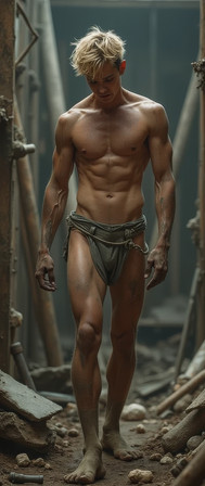 #photography #barefeet #barefoot #blond #enslaved #loincloth #outdoors #perchance #roman #shirtless #slavery #youngman #hardlabor #ancient_rome #outside #perchance_ai