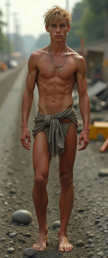 #ancientrome #barefeet #barefoot #blond #enslaved #grok #loincloth #outdoors #road #roma #roman #romans #rome #shirtless #slavery #youngman #hardlabor #stone_road #outside #grok_ai