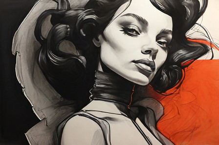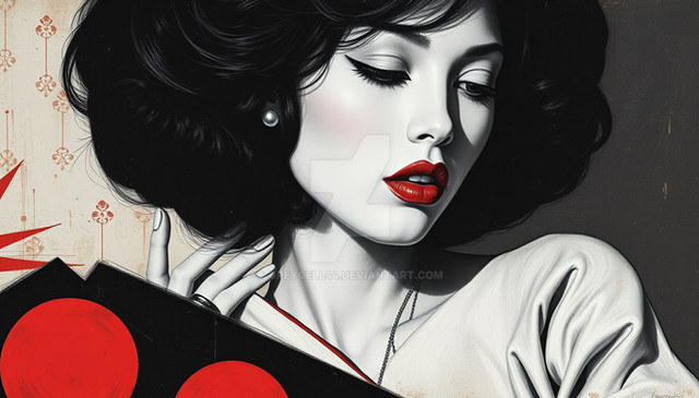 #portrait #beauty #noir #ai #dreamup #drama #gothic #portraitgirl #glamour #fishnet #sexy #ai_art #synthography