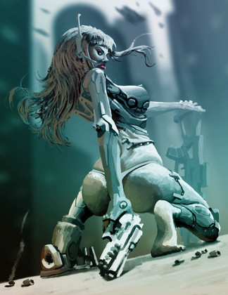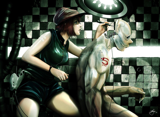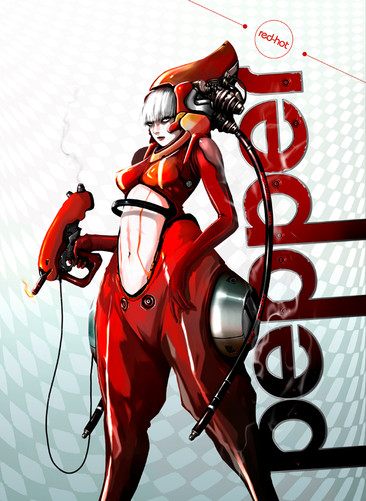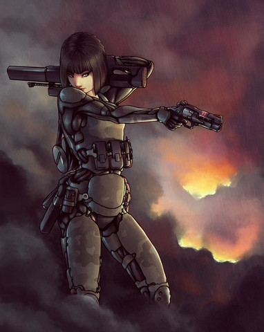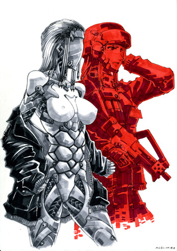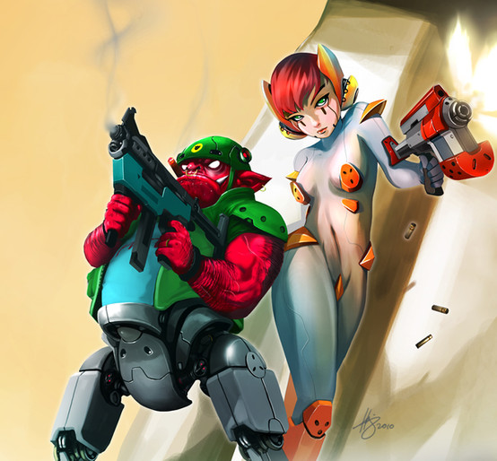 Pretty ace man Rockin' mecha design and gun toting babe, where can you go wrong? I dig