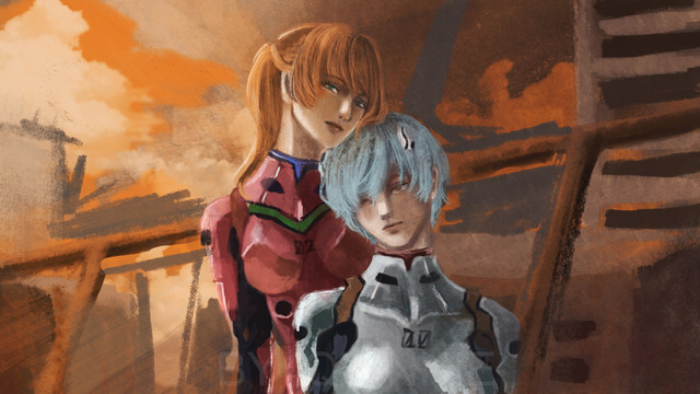 Interesting fanart! I wish Asuka and Rei could have gotten closer in the series.
