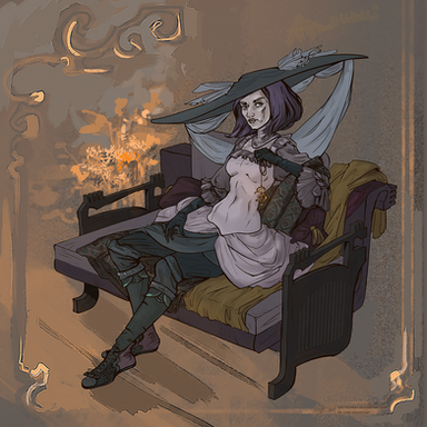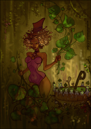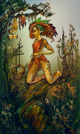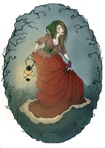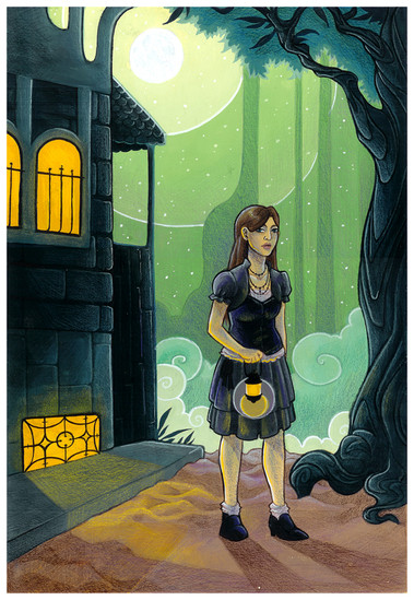 Nice blue glow on the mushrooms; I also like the amount of details you put in the dress and tree. Great job