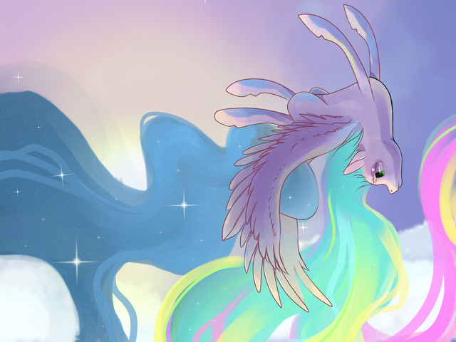 The smile and the pose remind me a little of Falcor in the movie adaptation of the neverending story (I really love the book it is based on). Is that a coincident or did the movie provide a little inspiration for your beautiful image, Greyscaledraws?