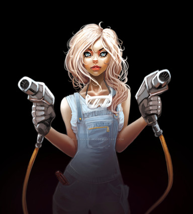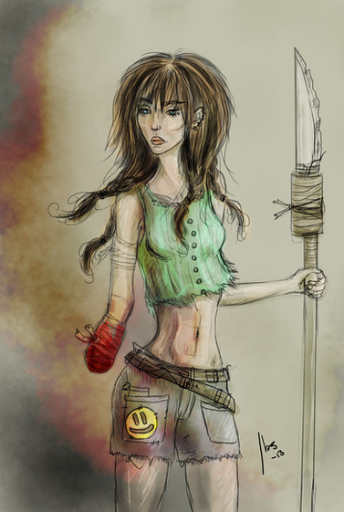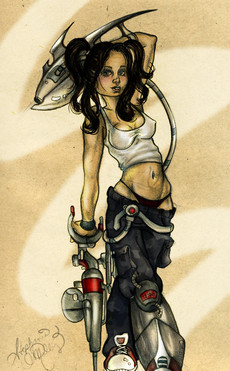 She has an intense personality for sure but the boat wasn't her fault. She is part of a series of characters called Kidpocalypse, about a world where only kids are left. She just surfs, the boat sunk itself. I have like 5 more finished in a folder and I'm starting to make more again, I have like 50 sketched.