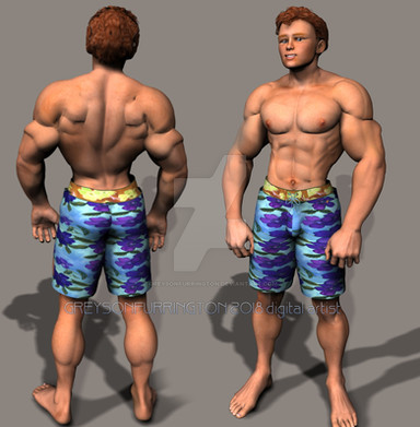 Front and back of David3 with my custom face and body design. I love this character - so versatile. Bummer that his poly count is so high. Iβve been asked if he could be used for video game usage and the answer is no. Typical poly count is in 10K range and this guy in all his glory is about 36k polys. Add in those shorts, shoes, hat and maps and you get well over 126 mgs for his PZ3 alone. Heβs a big boy in a lot of ways.Related content