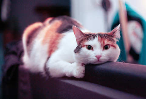 I adore the pose of the cat, the focus and the subtle colors in the background. Perfect.