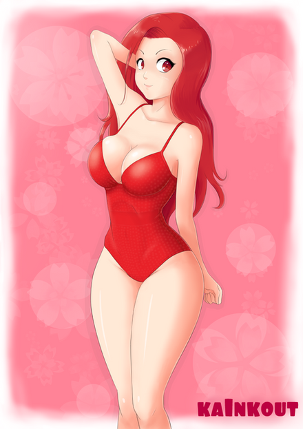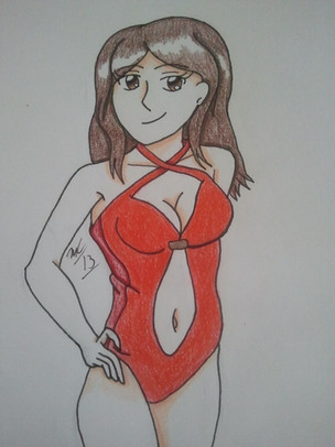 Wifey has her eyes on a new swimsuit! In the catalogue it's white (still hot!) but I'm somehow visualising her in red instead!Partly cos I'm one of her dedicated Patrons - who can provide requests and ideas for her future art - and also because I'm absolutely smitten by my gorgeous wife, she decided to draw herself wearing it! And here's that sketch with a splash of colour!