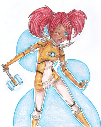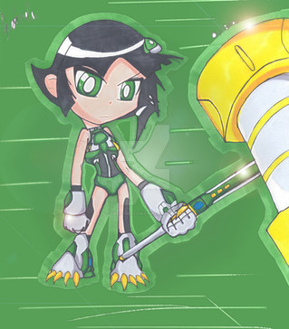 I'm really proud of this one. It's been a while, but she's back. I was told the PPG dress was overused, so I came up with this outfit, cos Bio loves technology. This is her final overall physical appearance, although she still uses the dress.Related content