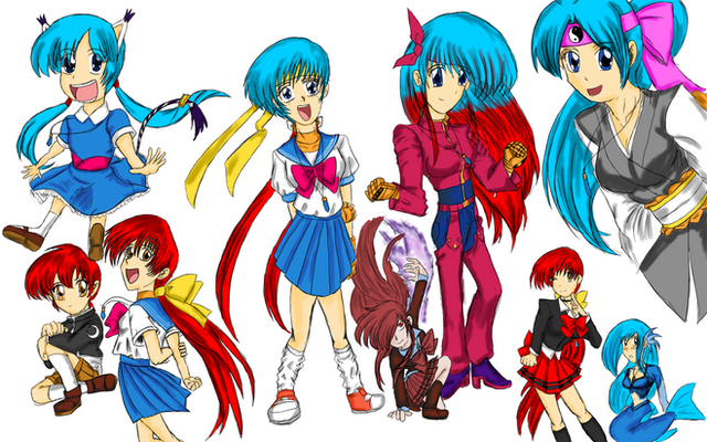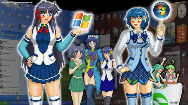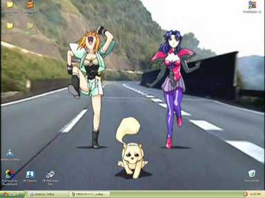 All hail Bossygirl for producing the desktop I currently use, featuring my six main girls, most of which haven't even appeared in my stories or don't appear anymore.From left to right: Blaze, Breannin, Mystery Girl (the eyes), Barasia, Biohazard and Blood.