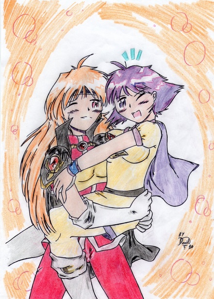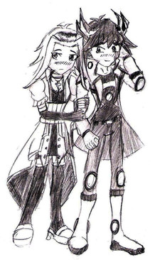 Another picture I did for a friend as a commission. It has no bearing on my story plot.Xenia's a little bit hands-y. Yancey doesn't approve.