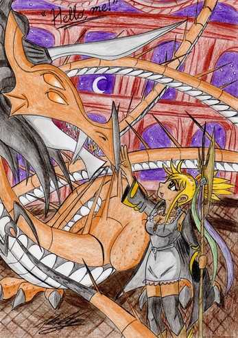 So my writing hobby is pretty much over with. The interest isn't there anymore from those who used to read so I guess there isn't much point continuing. Oh well, plenty of other better things to focus on insteadSo here's another picture from way back when, which would have focused on something I probably won't write now. You always need someone to stand up to the monsters and keep watch. This would have gone right before the story Sidestep, the art for which you can see here