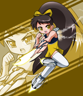 Bio really did a number with her outfit. With a gorgeous exposed midriff and ample amplification of her assets, the fact that Barasia is a growing young gynoid is made clear as day, allowing her to flaunt her beauty whilst kicking some ass.