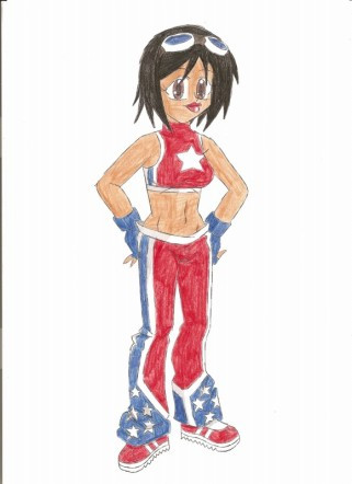 Quite unique, I love the outfit. I think it goes well with her ( and goes well with some wind *shot* ). I like how you colored it also, I like everything about this picture. Well done