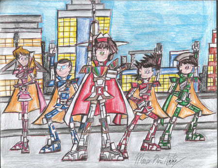 Some new characters set to debut in my storyline, plus one from PPGD! Cute blondie is Tasha, the tall dude is Colonel Richter, the dark dude is Scarmjet, the chirpy brunette is Bluespark and the robot dude is Falken.And you all know Dexter. They are West Gate, a team of allies who'll be there to help in times of danger!